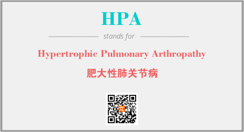 英文缩略词“HPA”经常作为“Hypertrophic Pulmonary Arthropathy”的英文缩写来使用,中文表示:“肥大性肺关节病”。本文将详细介绍英文缩写词HPA所代表英文单词,其对应的中文拼音、详细解释以及在英语中的流行度。此外,还有关于缩略词HPA的分类、应用领域及相关应用示例等。