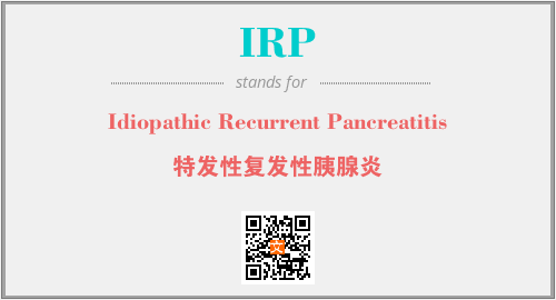 英文缩略词“IRP”经常作为“Idiopathic Recurrent Pancreatitis”的英文缩写来使用,中文表示:“特发性复发性胰腺炎”。本文将详细介绍英文缩写词IRP所代表英文单词,其对应的中文拼音、详细解释以及在英语中的流行度。此外,还有关于缩略词IRP的分类、应用领域及相关应用示例等。