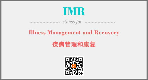 英文缩略词“IMR”经常作为“Illness Management and Recovery”的英文缩写来使用,中文表示:“疾病管理和康复”。本文将详细介绍英文缩写词IMR所代表英文单词,其对应的中文拼音、详细解释以及在英语中的流行度。此外,还有关于缩略词IMR的分类、应用领域及相关应用示例等。