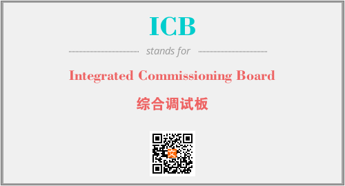 英文缩略词“ICB”经常作为“Integrated Commissioning Board”的英文缩写来使用,中文表示:“综合调试板”。本文将详细介绍英文缩写词ICB所代表英文单词,其对应的中文拼音、详细解释以及在英语中的流行度。此外,还有关于缩略词ICB的分类、应用领域及相关应用示例等。