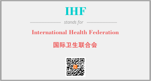 英文缩略词“IHF”经常作为“International Health Federation”的英文缩写来使用,中文表示:“国际卫生联合会”。本文将详细介绍英文缩写词IHF所代表英文单词,其对应的中文拼音、详细解释以及在英语中的流行度。此外,还有关于缩略词IHF的分类、应用领域及相关应用示例等。