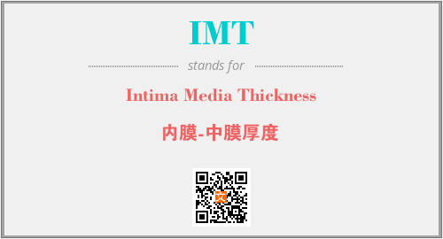 上述内容是“Intima Media Thickness”作为“IMT”的缩写,解释为“内膜-中膜厚度”时的信息,以及英文缩略词IMT所代表的英文单词,其对应的中文拼音、详细解释以及在英文中的流行度和相关分类、应用领域及应用示例等。