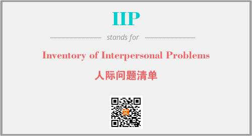 上述内容是“Inventory of Interpersonal Problems”作为“IIP”的缩写,解释为“人际问题清单”时的信息,以及英文缩略词IIP所代表的英文单词,其对应的中文拼音、详细解释以及在英文中的流行度和相关分类、应用领域及应用示例等。