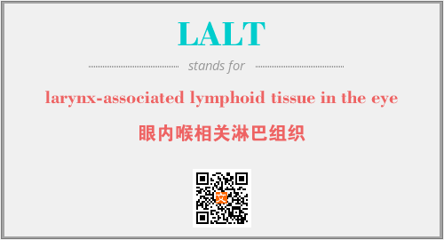 上述内容是“larynx-associated lymphoid tissue in the eye”作为“LALT”的缩写,解释为“眼内喉相关淋巴组织”时的信息,以及英文缩略词LALT所代表的英文单词,其对应的中文拼音、详细解释以及在英文中的流行度和相关分类、应用领域及应用示例等。