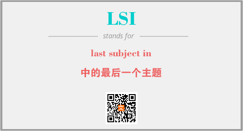 英文缩略词“LSI”经常作为“last subject in”的英文缩写来使用,中文表示:“中的最后一个主题”。本文将详细介绍英文缩写词LSI所代表英文单词,其对应的中文拼音、详细解释以及在英语中的流行度。此外,还有关于缩略词LSI的分类、应用领域及相关应用示例等。