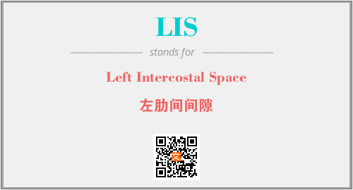 英文缩略词“LIS”经常作为“Left Intercostal Space”的英文缩写来使用,中文表示:“左肋间间隙”。本文将详细介绍英文缩写词LIS所代表英文单词,其对应的中文拼音、详细解释以及在英语中的流行度。此外,还有关于缩略词LIS的分类、应用领域及相关应用示例等。