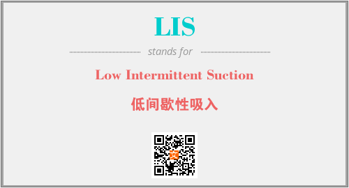 英文缩略词“LIS”经常作为“Low Intermittent Suction”的英文缩写来使用,中文表示:“低间歇性吸入”。本文将详细介绍英文缩写词LIS所代表英文单词,其对应的中文拼音、详细解释以及在英语中的流行度。此外,还有关于缩略词LIS的分类、应用领域及相关应用示例等。