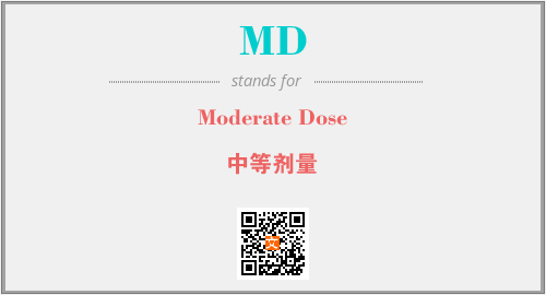 上述内容是“Moderate Dose”作为“MD”的缩写,解释为“中等剂量”时的信息,以及英文缩略词MD所代表的英文单词,其对应的中文拼音、详细解释以及在英文中的流行度和相关分类、应用领域及应用示例等。