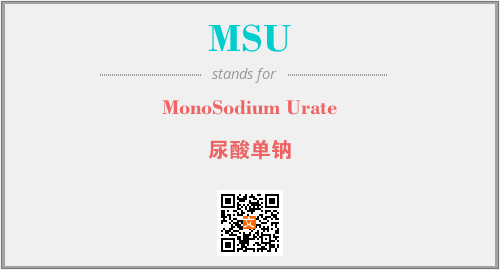 英文缩略词“MSU”经常作为“MonoSodium Urate”的英文缩写来使用,中文表示:“尿酸单钠”。本文将详细介绍英文缩写词MSU所代表英文单词,其对应的中文拼音、详细解释以及在英语中的流行度。此外,还有关于缩略词MSU的分类、应用领域及相关应用示例等。