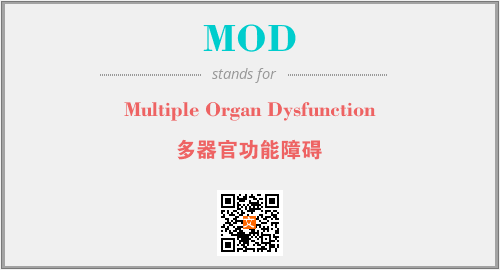英文缩略词“MOD”经常作为“Multiple Organ Dysfunction”的英文缩写来使用,中文表示:“多器官功能障碍”。本文将详细介绍英文缩写词MOD所代表英文单词,其对应的中文拼音、详细解释以及在英语中的流行度。此外,还有关于缩略词MOD的分类、应用领域及相关应用示例等。
