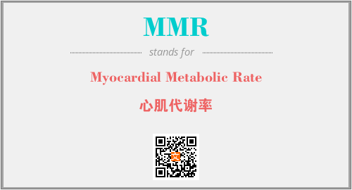 英文缩略词“MMR”经常作为“Myocardial Metabolic Rate”的英文缩写来使用,中文表示:“心肌代谢率”。本文将详细介绍英文缩写词MMR所代表英文单词,其对应的中文拼音、详细解释以及在英语中的流行度。此外,还有关于缩略词MMR的分类、应用领域及相关应用示例等。