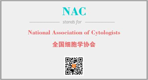 上述内容是“National Association of Cytologists”作为“NAC”的缩写,解释为“全国细胞学协会”时的信息,以及英文缩略词NAC所代表的英文单词,其对应的中文拼音、详细解释以及在英文中的流行度和相关分类、应用领域及应用示例等。