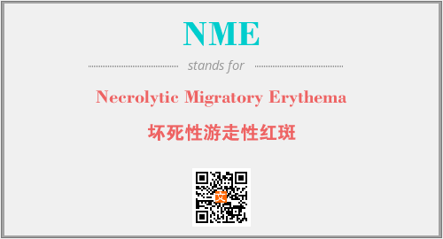 上述内容是“Necrolytic Migratory Erythema”作为“NME”的缩写,解释为“坏死性游走性红斑”时的信息,以及英文缩略词NME所代表的英文单词,其对应的中文拼音、详细解释以及在英文中的流行度和相关分类、应用领域及应用示例等。