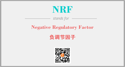 以上为Negative Regulatory Factor英文缩略词NRF的中文解释,以及该英文缩写在英语的流行度、分类和应用领域方面的信息。