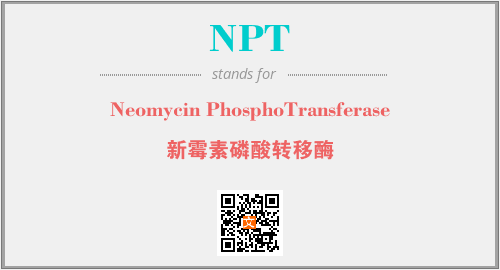 上述内容是“Neomycin PhosphoTransferase”作为“NPT”的缩写,解释为“新霉素磷酸转移酶”时的信息,以及英文缩略词NPT所代表的英文单词,其对应的中文拼音、详细解释以及在英文中的流行度和相关分类、应用领域及应用示例等。