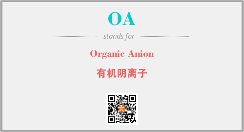 上述内容是“Organic Anion”作为“OA”的缩写,解释为“有机阴离子”时的信息,以及英文缩略词OA所代表的英文单词,其对应的中文拼音、详细解释以及在英文中的流行度和相关分类、应用领域及应用示例等。