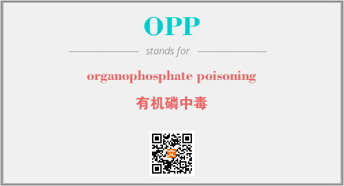 上述内容是“organophosphate poisoning”作为“OPP”的缩写,解释为“有机磷中毒”时的信息,以及英文缩略词OPP所代表的英文单词,其对应的中文拼音、详细解释以及在英文中的流行度和相关分类、应用领域及应用示例等。