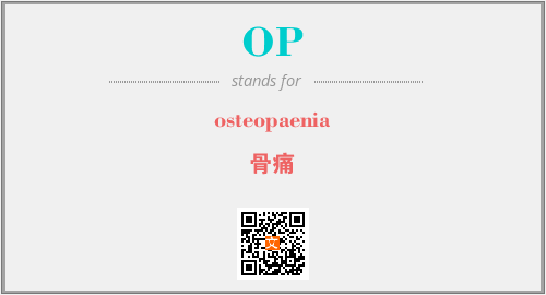 英文缩略词“OP”经常作为“osteopaenia”的英文缩写来使用,中文表示:“骨痛”。本文将详细介绍英文缩写词OP所代表英文单词,其对应的中文拼音、详细解释以及在英语中的流行度。此外,还有关于缩略词OP的分类、应用领域及相关应用示例等。