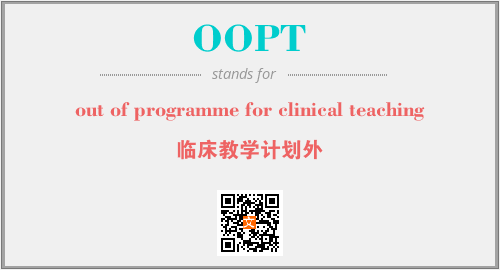 以上为out of programme for clinical teaching英文缩略词OOPT的中文解释,以及该英文缩写在英语的流行度、分类和应用领域方面的信息。