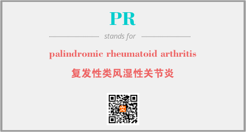 以上为palindromic rheumatoid arthritis英文缩略词PR的中文解释,以及该英文缩写在英语的流行度、分类和应用领域方面的信息。