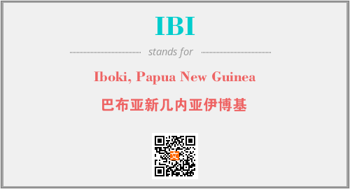 英文缩略词“IBI”经常作为“Iboki, Papua New Guinea”的英文缩写来使用,中文表示:“巴布亚新几内亚伊博基”。本文将详细介绍英文缩写词IBI所代表英文单词,其对应的中文拼音、详细解释以及在英语中的流行度。此外,还有关于缩略词IBI的分类、应用领域及相关应用示例等。