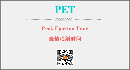 英文缩略词“PET”经常作为“Peak Ejection Time”的英文缩写来使用,中文表示:“峰值喷射时间”。本文将详细介绍英文缩写词PET所代表英文单词,其对应的中文拼音、详细解释以及在英语中的流行度。此外,还有关于缩略词PET的分类、应用领域及相关应用示例等。