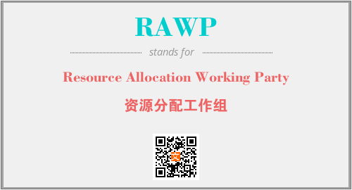 英文缩略词“RAWP”经常作为“Resource Allocation Working Party”的英文缩写来使用,中文表示:“资源分配工作组”。本文将详细介绍英文缩写词RAWP所代表英文单词,其对应的中文拼音、详细解释以及在英语中的流行度。此外,还有关于缩略词RAWP的分类、应用领域及相关应用示例等。