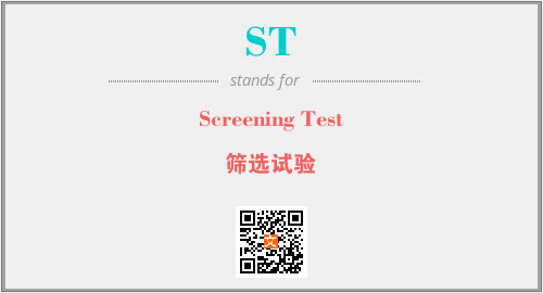 英文缩略词“ST”经常作为“Screening Test”的英文缩写来使用,中文表示:“筛选试验”。本文将详细介绍英文缩写词ST所代表英文单词,其对应的中文拼音、详细解释以及在英语中的流行度。此外,还有关于缩略词ST的分类、应用领域及相关应用示例等。