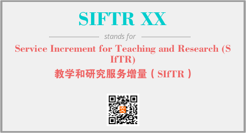 以上为Service Increment for Teaching and Research (SIfTR)英文缩略词SIFTR XX的中文解释,以及该英文缩写在英语的流行度、分类和应用领域方面的信息。