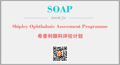 上述内容是“Shipley Ophthalmic Assessment Programme”作为“SOAP”的缩写,解释为“希普利眼科评估计划”时的信息,以及英文缩略词SOAP所代表的英文单词,其对应的中文拼音、详细解释以及在英文中的流行度和相关分类、应用领域及应用示例等。