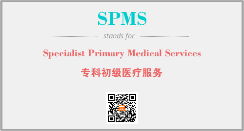 上述内容是“Specialist Primary Medical Services”作为“SPMS”的缩写,解释为“专科初级医疗服务”时的信息,以及英文缩略词SPMS所代表的英文单词,其对应的中文拼音、详细解释以及在英文中的流行度和相关分类、应用领域及应用示例等。
