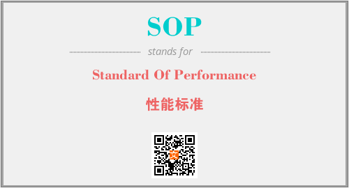 上述内容是“Standard Of Performance”作为“SOP”的缩写,解释为“性能标准”时的信息,以及英文缩略词SOP所代表的英文单词,其对应的中文拼音、详细解释以及在英文中的流行度和相关分类、应用领域及应用示例等。
