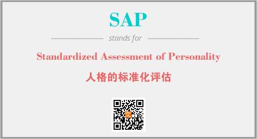 上述内容是“Standardized Assessment of Personality”作为“SAP”的缩写,解释为“人格的标准化评估”时的信息,以及英文缩略词SAP所代表的英文单词,其对应的中文拼音、详细解释以及在英文中的流行度和相关分类、应用领域及应用示例等。