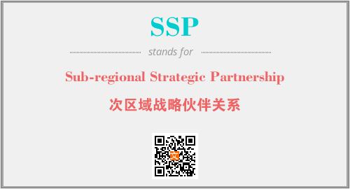 上述内容是“Sub-regional Strategic Partnership”作为“SSP”的缩写,解释为“次区域战略伙伴关系”时的信息,以及英文缩略词SSP所代表的英文单词,其对应的中文拼音、详细解释以及在英文中的流行度和相关分类、应用领域及应用示例等。