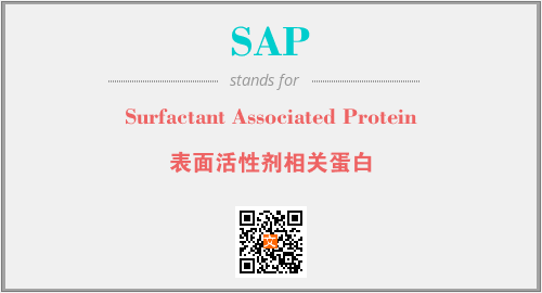 上述内容是“Surfactant Associated Protein”作为“SAP”的缩写,解释为“表面活性剂相关蛋白”时的信息,以及英文缩略词SAP所代表的英文单词,其对应的中文拼音、详细解释以及在英文中的流行度和相关分类、应用领域及应用示例等。