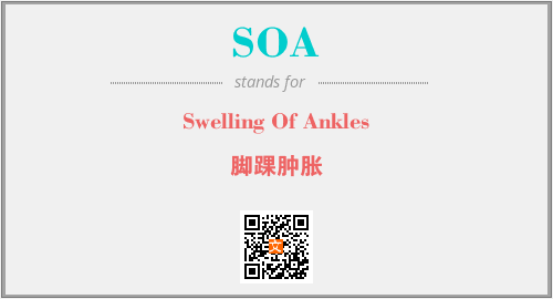 以上为Swelling Of Ankles英文缩略词SOA的中文解释,以及该英文缩写在英语的流行度、分类和应用领域方面的信息。