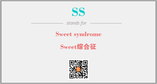 英文缩略词“SS”经常作为“Sweet syndrome”的英文缩写来使用,中文表示:“Sweet综合征”。本文将详细介绍英文缩写词SS所代表英文单词,其对应的中文拼音、详细解释以及在英语中的流行度。此外,还有关于缩略词SS的分类、应用领域及相关应用示例等。