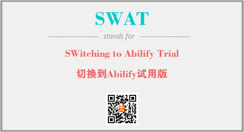 以上为SWitching to Abilify Trial英文缩略词SWAT的中文解释,以及该英文缩写在英语的流行度、分类和应用领域方面的信息。