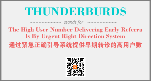 上述内容是“The High User Number Delivering Early Referrals By Urgent Right Direction System”作为“THUNDERBURDS”的缩写,解释为“通过紧急正确引导系统提供早期转诊的高用户数”时的信息,以及英文缩略词THUNDERBURDS所代表的英文单词,其对应的中文拼音、详细解释以及在英文中的流行度和相关分类、应用领域及应用示例等。