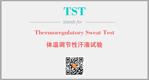 英文缩略词“TST”经常作为“Thermoregulatory Sweat Test”的英文缩写来使用,中文表示:“体温调节性汗液试验”。本文将详细介绍英文缩写词TST所代表英文单词,其对应的中文拼音、详细解释以及在英语中的流行度。此外,还有关于缩略词TST的分类、应用领域及相关应用示例等。