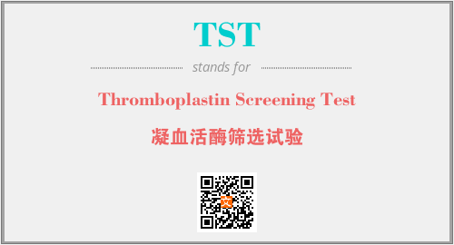 英文缩略词“TST”经常作为“Thromboplastin Screening Test”的英文缩写来使用,中文表示:“凝血活酶筛选试验”。本文将详细介绍英文缩写词TST所代表英文单词,其对应的中文拼音、详细解释以及在英语中的流行度。此外,还有关于缩略词TST的分类、应用领域及相关应用示例等。