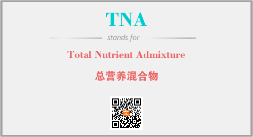 上述内容是“Total Nutrient Admixture”作为“TNA”的缩写,解释为“总营养混合物”时的信息,以及英文缩略词TNA所代表的英文单词,其对应的中文拼音、详细解释以及在英文中的流行度和相关分类、应用领域及应用示例等。