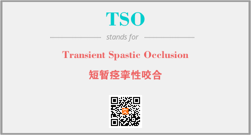上述内容是“Transient Spastic Occlusion”作为“TSO”的缩写,解释为“短暂痉挛性咬合”时的信息,以及英文缩略词TSO所代表的英文单词,其对应的中文拼音、详细解释以及在英文中的流行度和相关分类、应用领域及应用示例等。