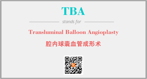 英文缩略词“TBA”经常作为“Transluminal Balloon Angioplasty”的英文缩写来使用,中文表示:“腔内球囊血管成形术”。本文将详细介绍英文缩写词TBA所代表英文单词,其对应的中文拼音、详细解释以及在英语中的流行度。此外,还有关于缩略词TBA的分类、应用领域及相关应用示例等。