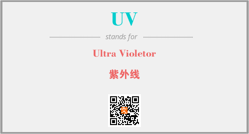 上述内容是“Ultra Violetor”作为“UV”的缩写,解释为“紫外线”时的信息,以及英文缩略词UV所代表的英文单词,其对应的中文拼音、详细解释以及在英文中的流行度和相关分类、应用领域及应用示例等。