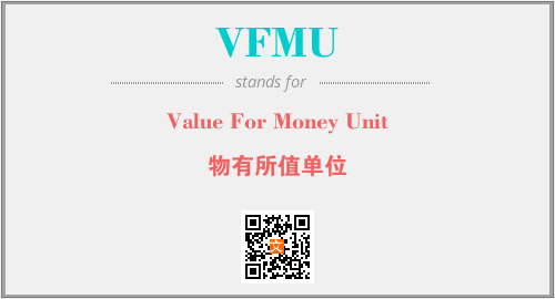 上述内容是“Value For Money Unit”作为“VFMU”的缩写,解释为“物有所值单位”时的信息,以及英文缩略词VFMU所代表的英文单词,其对应的中文拼音、详细解释以及在英文中的流行度和相关分类、应用领域及应用示例等。