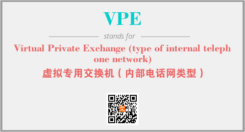 英文缩略词“VPE”经常作为“Virtual Private Exchange (type of internal telephone network)”的英文缩写来使用,中文表示:“虚拟专用交换机(内部电话网类型)”。本文将详细介绍英文缩写词VPE所代表英文单词,其对应的中文拼音、详细解释以及在英语中的流行度。此外,还有关于缩略词VPE的分类、应用领域及相关应用示例等。
