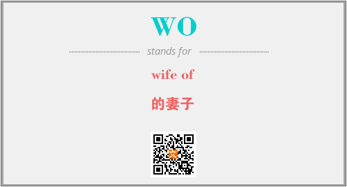 上述内容是“wife of”作为“WO”的缩写,解释为“的妻子”时的信息,以及英文缩略词WO所代表的英文单词,其对应的中文拼音、详细解释以及在英文中的流行度和相关分类、应用领域及应用示例等。
