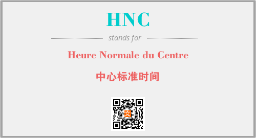 上述内容是“Heure Normale du Centre”作为“HNC”的缩写,解释为“中心标准时间”时的信息,以及英文缩略词HNC所代表的英文单词,其对应的中文拼音、详细解释以及在英文中的流行度和相关分类、应用领域及应用示例等。