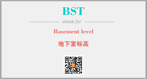 英文缩略词“BST”经常作为“Basement level”的英文缩写来使用,中文表示:“地下室标高”。本文将详细介绍英文缩写词BST所代表英文单词,其对应的中文拼音、详细解释以及在英语中的流行度。此外,还有关于缩略词BST的分类、应用领域及相关应用示例等。
